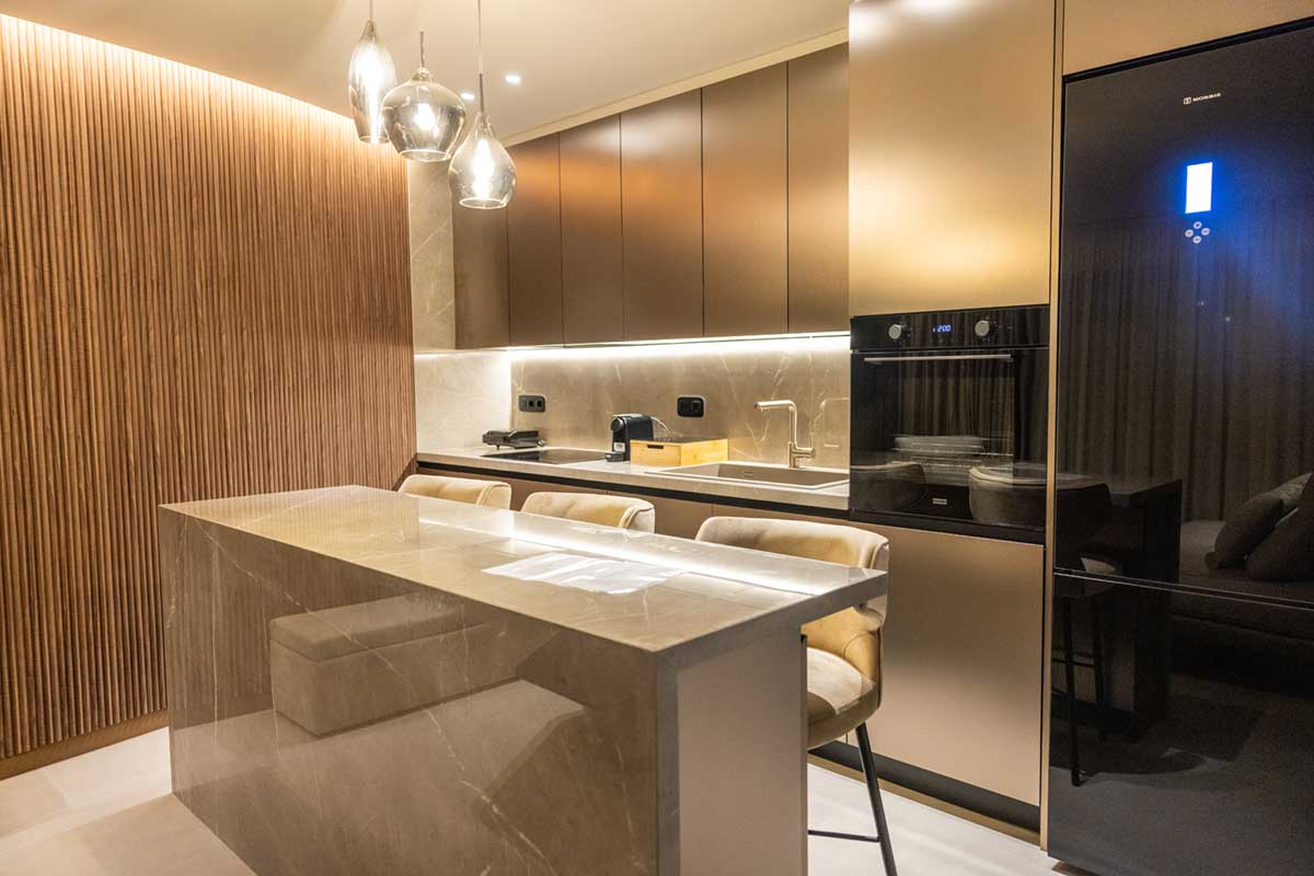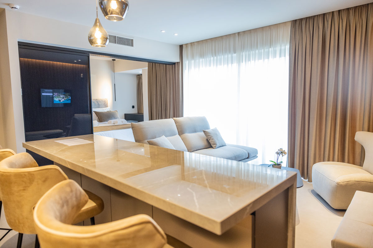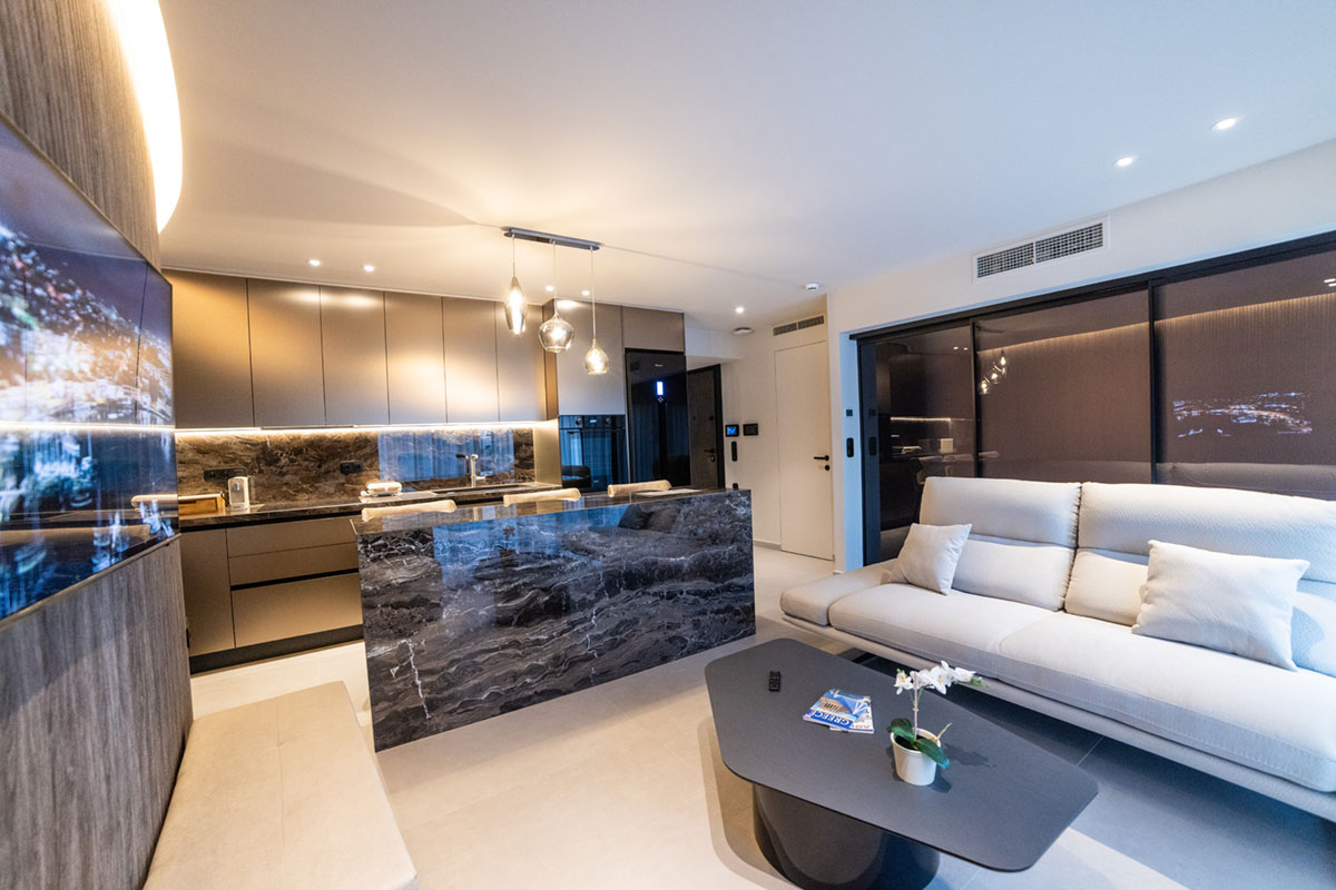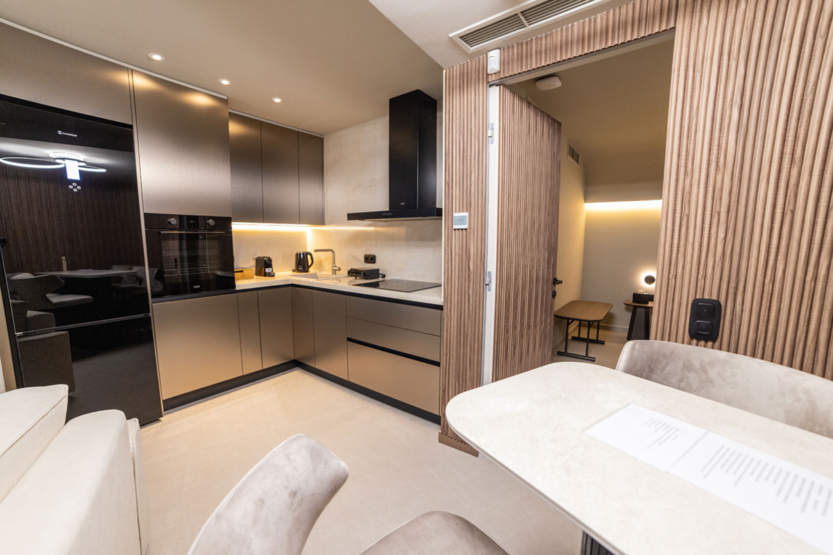 Τα διαμερίσματά μας είναι σχεδιασμένα για δύο, τρία ή τέσσερα άτομα, ανάλογα με το χώρο, και διαθέτουν πλήρως εξοπλισμένη κουζίνα, ευρύχωρους χώρους καθιστικού και επιπλωμένα μπαλκόνια, δημιουργώντας μια πραγματική αίσθηση σπιτιού και όχι έναν απρόσωπο χώρο σε κοινόχρηστο κατάλυμα.